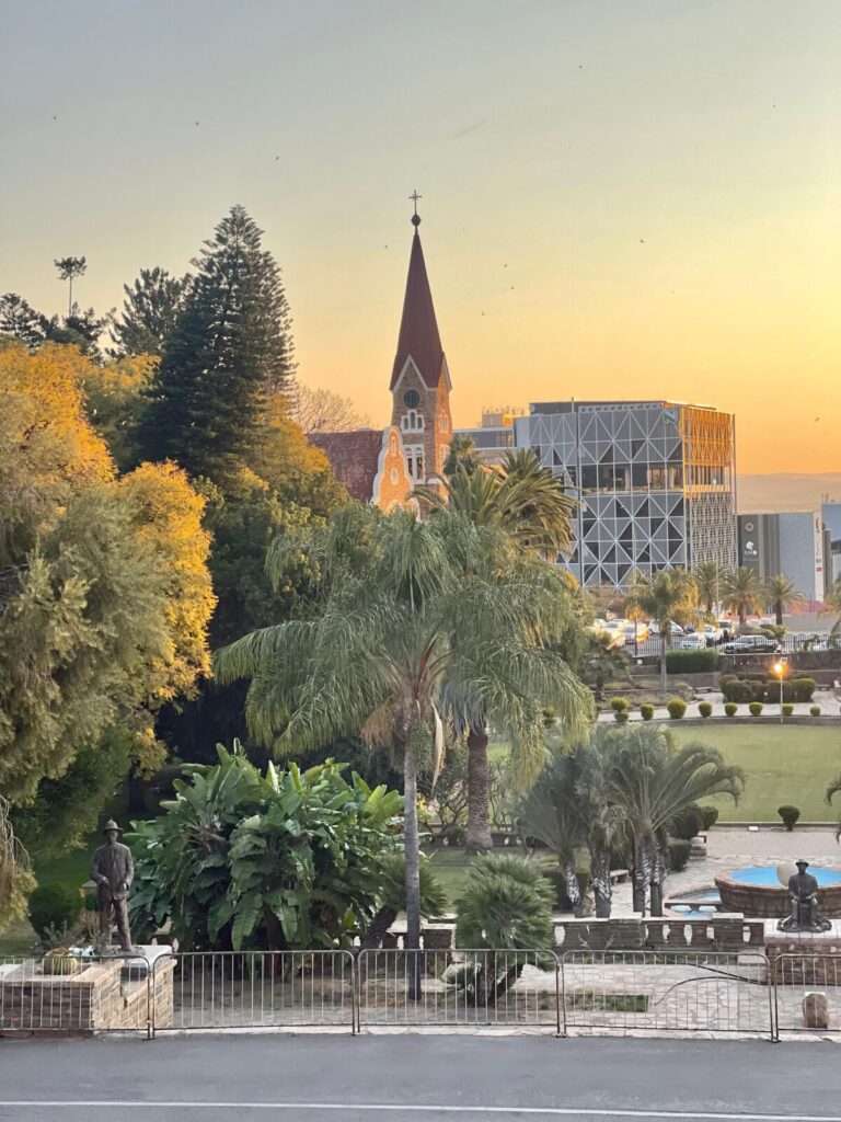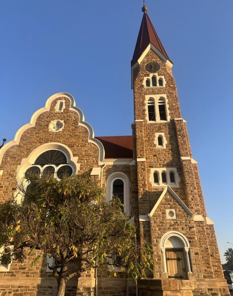Before dinner, I made a quick stop at Christuskirche, Windhoek’s most iconic landmark. Built in 1910, its sandstone walls, red-tiled roof, and stained-glass windows gave me a quiet moment to reflect on the journey.