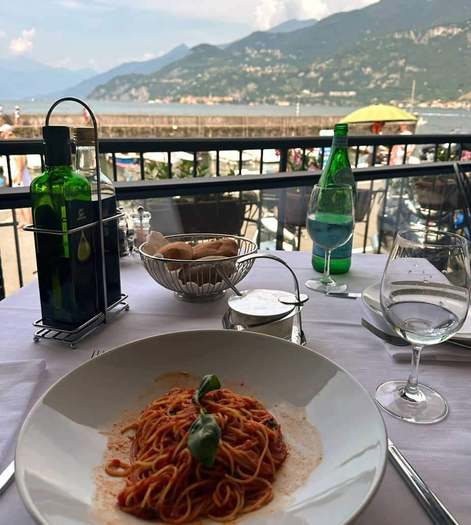 La Punta The ideal spot to visit before or after your private boat excursion on Lake Como. From here, you’ll enjoy a bird’s-eye view of the picturesque waterfront, dotted with passing boats and nearby villages. La Punta has authentic Italian cuisine with dishes like carpaccio, salads, and a variety of pastas. I highly recommend trying the classic spaghetti with tomato sauce and basil—it’s simply perfection.