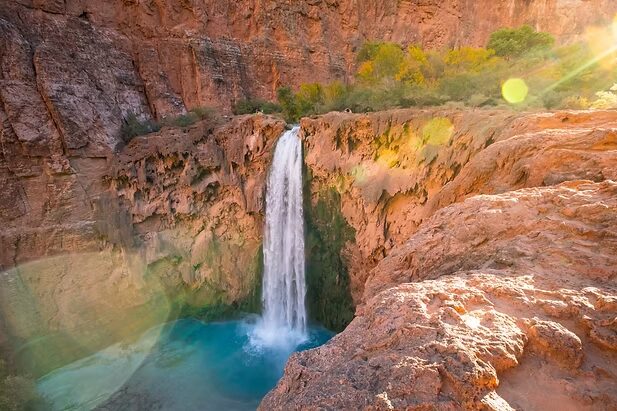 If you’re craving a dramatic change of scenery and want to chase waterfalls in the desert, Mooney Falls is one of Arizona’s most breathtaking hidden gems. Located deep in the Havasupai Indian Reservation, this turquoise waterfall plunges 200 feet into a canyon oasis, making the challenging journey completely worth it.